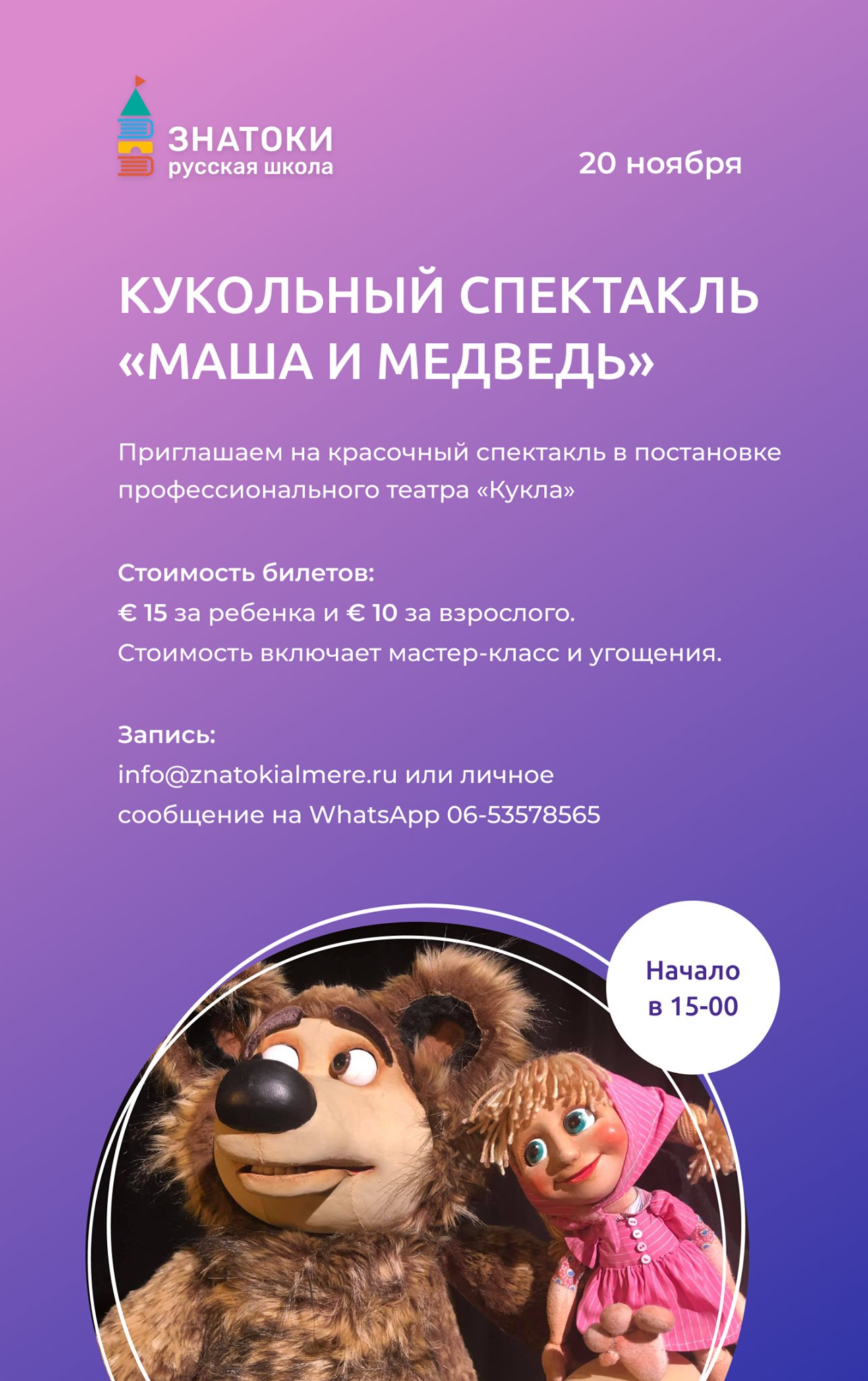 20 Ноября — Кукольный спектакль «Маша и Медведь»