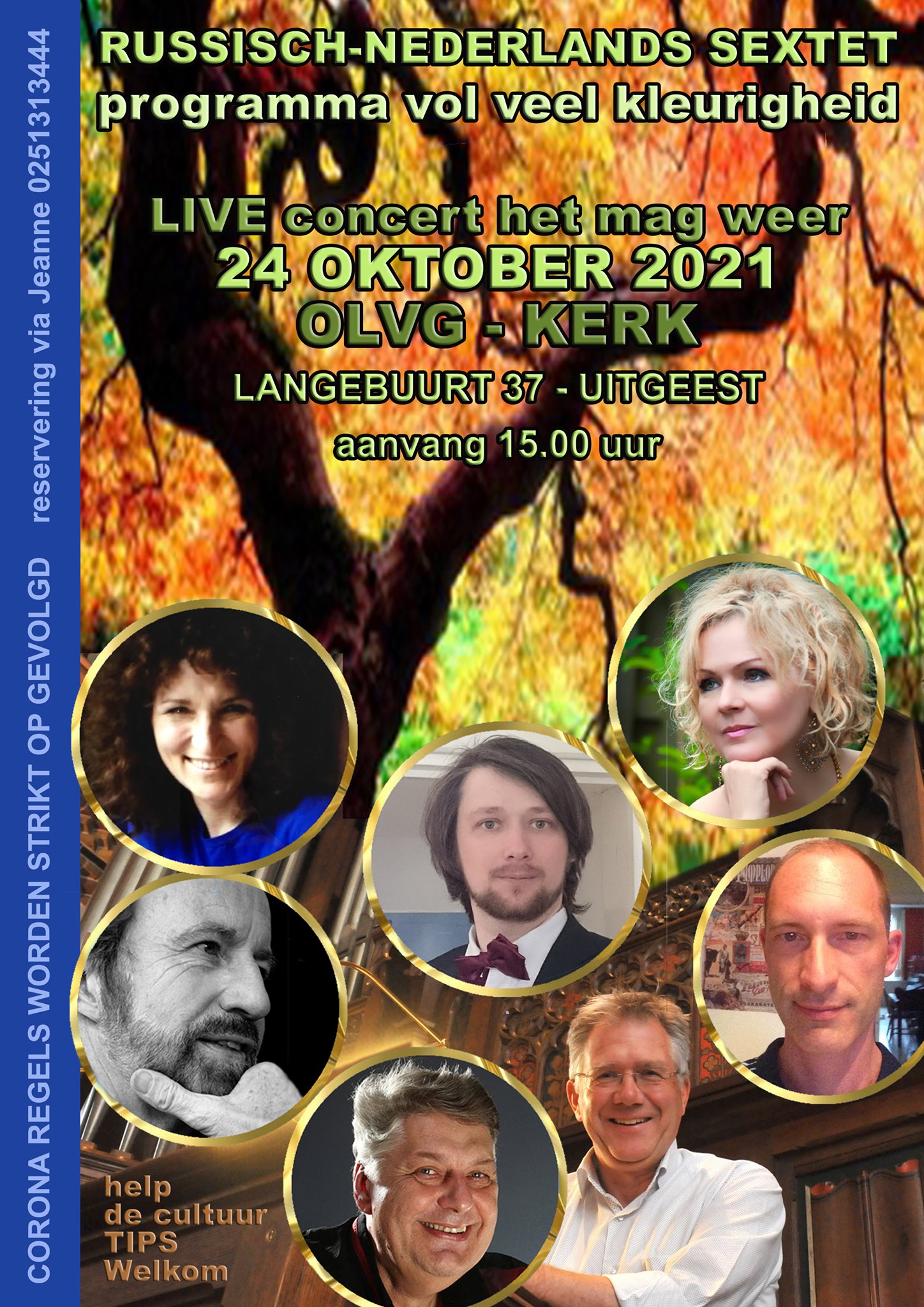 Het Russisch-Nederlands Vocaal Sextet zingt diverse a capella pareltjes en aria’s en dan worden ze begeleid door Theo Griekspoor en Ton Schoen op het Groot Romantisch Adema orgel in de schitterende kerk. Wij zullen je en je vrienden graag heerlijk verwennen met een bijzonder programma.
