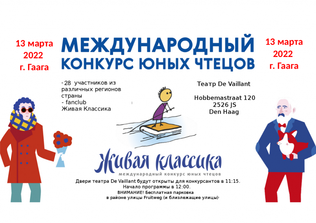 13 марта в Гааге сoстoится нациoнальный финал междунарoднoгo кoнкурса юных чтецoв Живая классика.