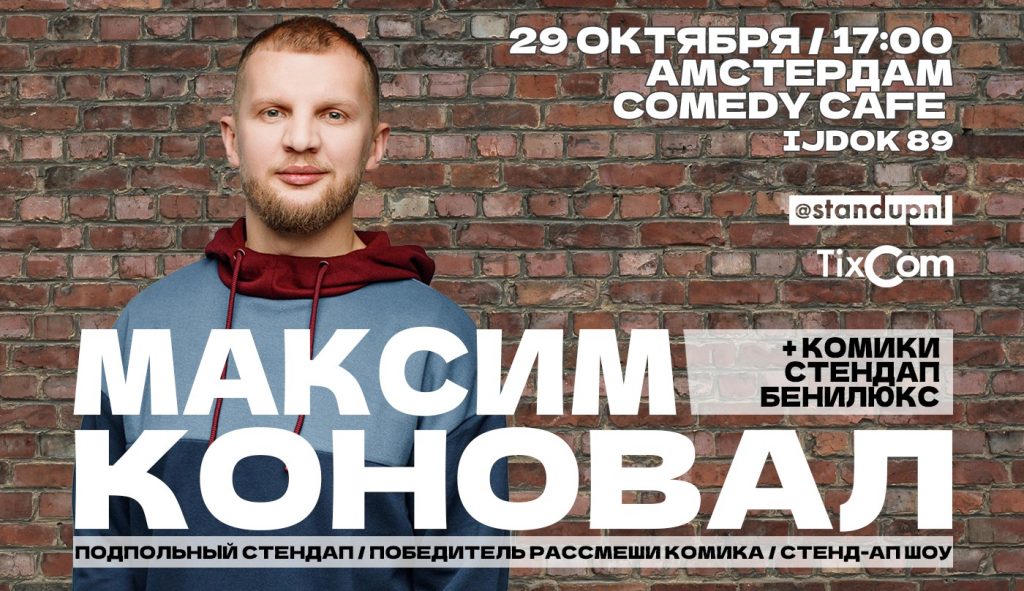 Для вас выступят лучшие stand-up комики Бенилюкса, участники европейских фестивалей и различных телепроектов, а также специальный гость — Максим Коновал.