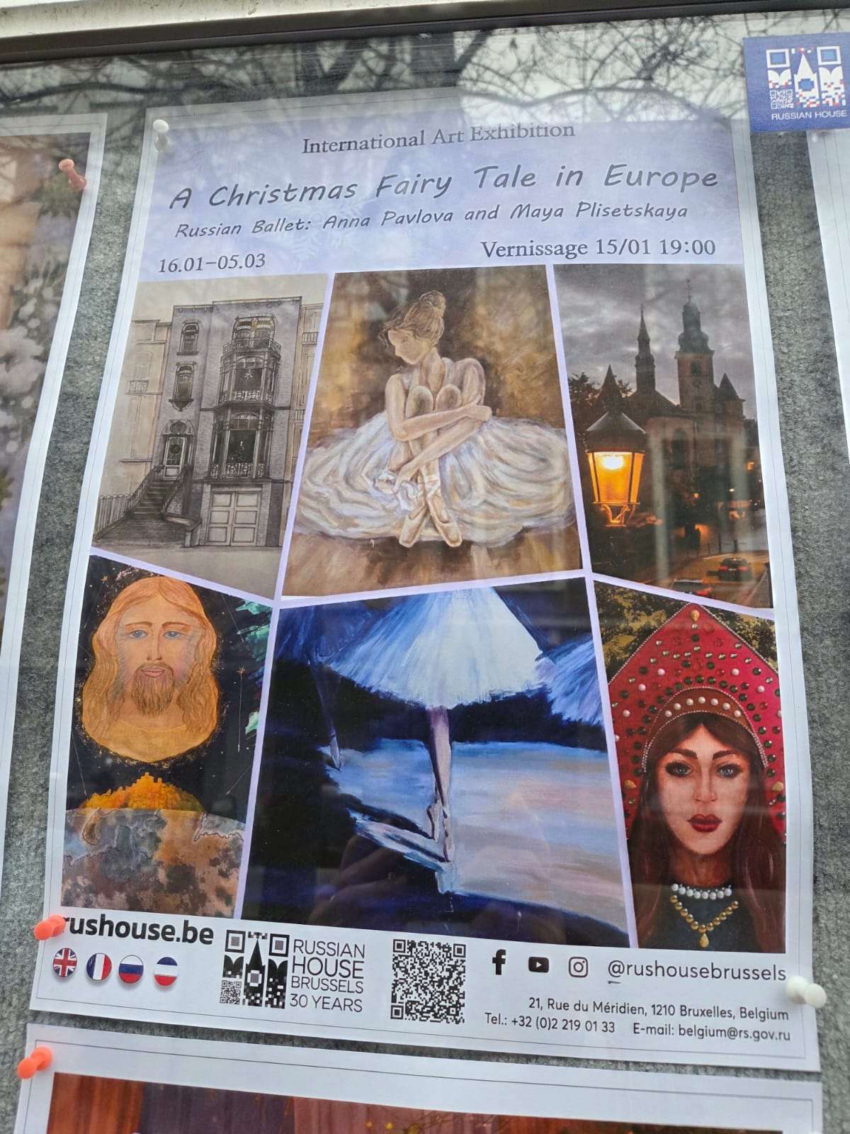 В Русском Доме в Брюсселе проходит художественная выставка, объединившая разные направления творчества: декоративно-прикладное искусство, текстиль, вышивку и живопись. Ведущие темы выставки рождественская сказка в Европе и русский балет, но есть и экспонаты на свободную тему. В экспозиции приняли участие художники и мастера — выходцы из бывшего СССР и их потомки, живущие в разных странах Европы. Подобные выставки регулярно организуются Русским Домом и открыты для авторов, работающих в самых разных техниках и жанрах.