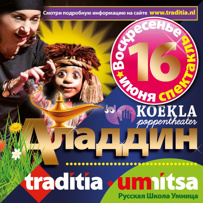 Профессиональный кукольный театр “Кукла” и Русская школа “Умница” приглашают вас на яркий, музыкальный и волшебный спектакль по мотивам восточной сказки “АЛАДДИН”!