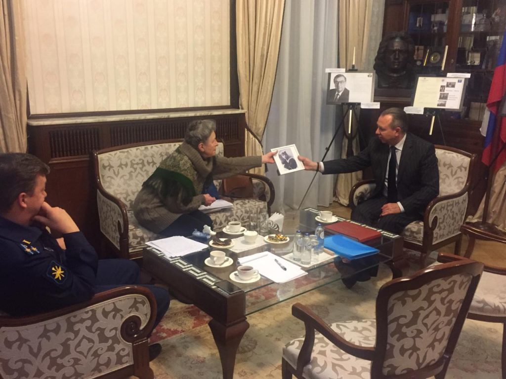 Фотоальбом был вручен советнику-посланнику Посольства России в Нидерландах Б.А.Жилко ветераном ВОВ, жительницей блокадного Ленинграда Г.А.Скрипкиной, проживающей в Нидерландах.