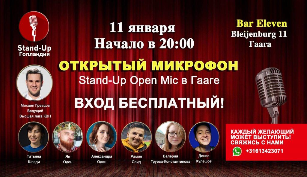 Хочешь попробовать себя в стендапе и выступить на «Открытом микрофоне»? Пиши нам +31613423071