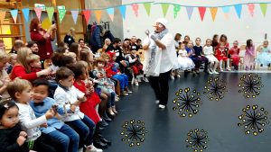 Веселые игры , песни и танцы закружили ребят… никто в зале не скучал. Праздник был замечательный и зажигательный! Ребята своей смекалкой смогли напугать хитрого волка, помогли пирату построить новый корабль, подготовили для Деда Мороза музыкальный сюрприз и вместе с дирижером снеговиком исполнили на музыкальных инструментах новогоднюю музыку.