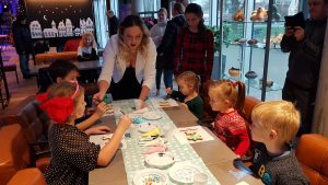 Приятным сюрпризом для всех на нашем празднике, был мастер класс от Зои Чурковой из Лейдена. Она учила ребят разукрашивать новогодние прянички. Никто не ушел без подарков.
