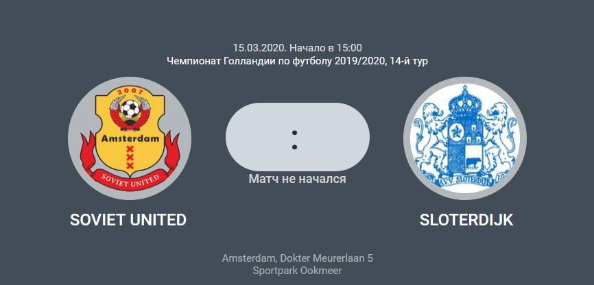 15 Марта — Чемпионат Нидерландов по футболу — Soviet United vs Sloterdijk