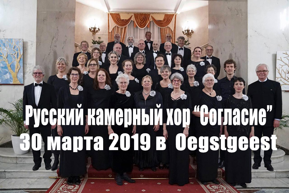 Русский Камерный хор “Согласие” Суббота, 30 марта 2019 в 20:00 Cultuurhuis De Paulus Warmonderweg 2, Oegstgeest