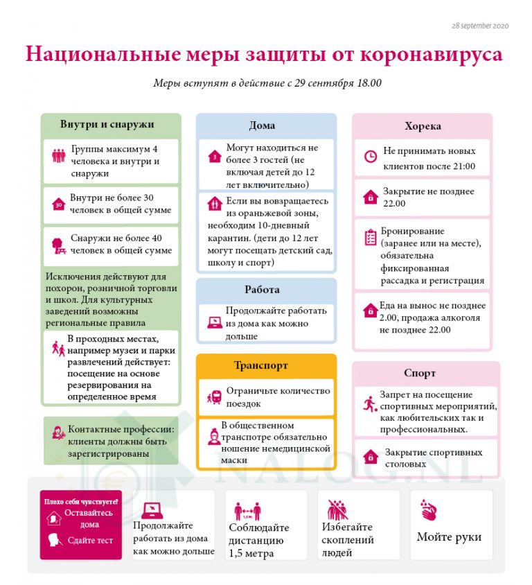 - В сфере общественного питания, посетители в обязательном порядке должны зарегистрироваться для возможного поиска контактов службой GGD в случае заражения.