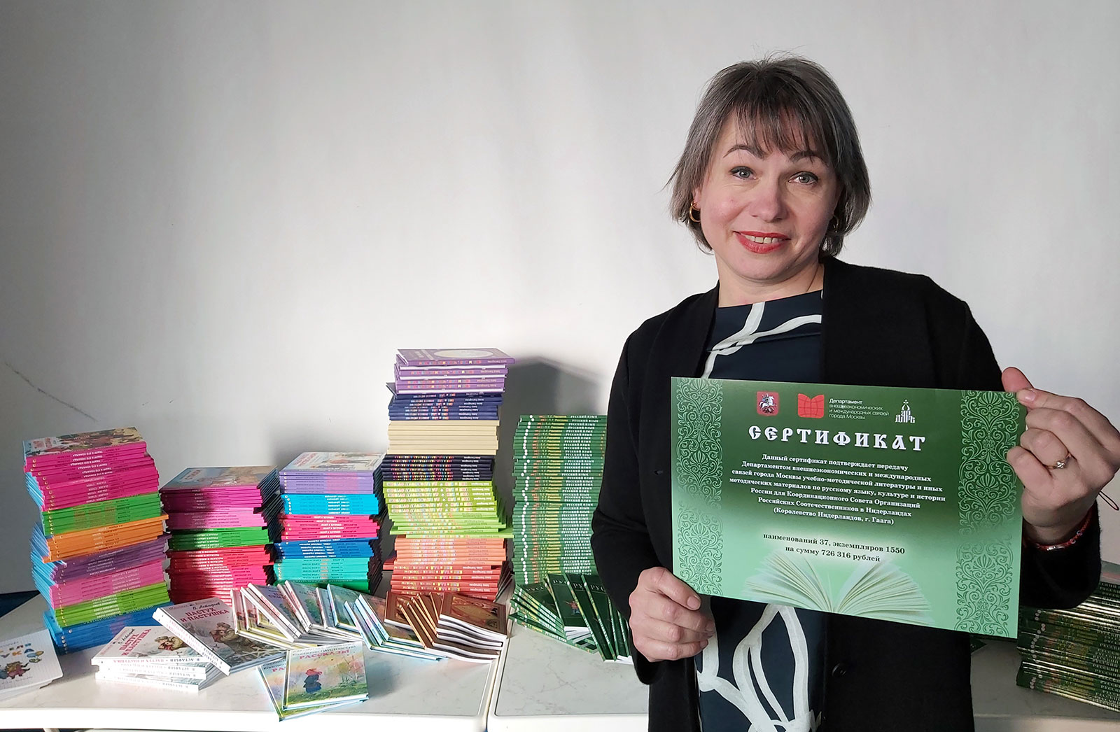Заявка была одобрена Департаментом внешнеэкономических и международных связей г. Москвы и Координационный Совет Российских Соотечественников в Нидерландах получил подарочный сертификат с правом получения учебно-методической литературы по русскому языку.